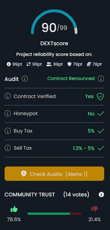 Среди прочего, информацию о безопасности смарт-контрактов можно узнать, исходя из данных внешних аналитических платформ (DEXTools, DEXScreener)На них нам стоит обратить внимание на следующие показатели: