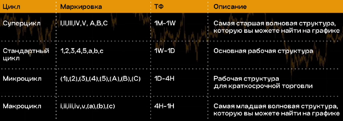 В маркировке первые 5 обозначений для трендовой волны, 3 последних для коррекционной. Также все эти буковки и циферки принято ставить у конца волны.