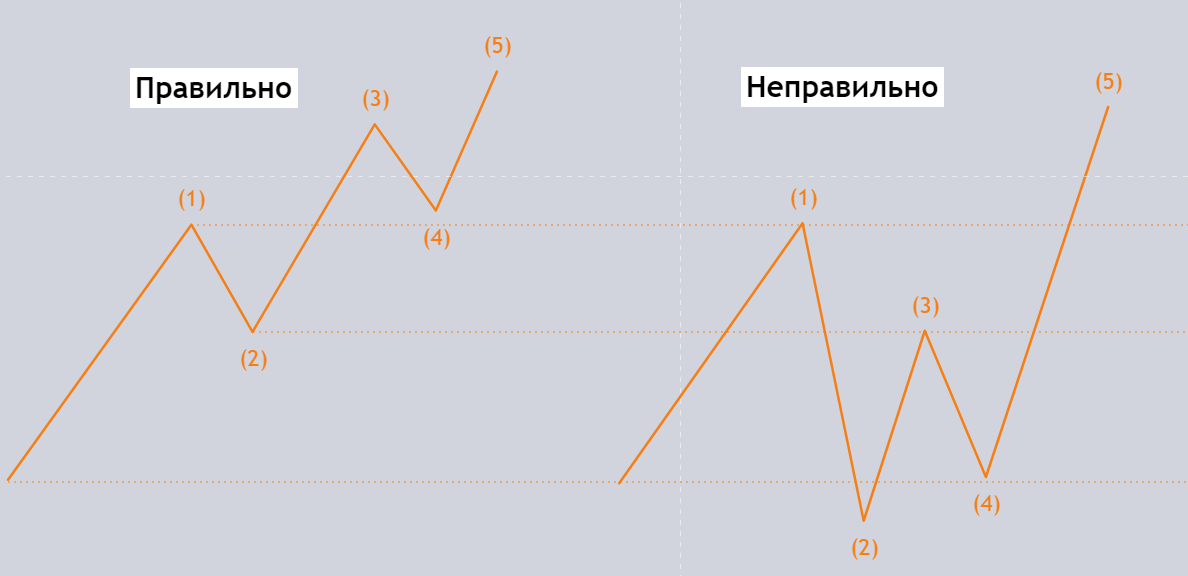 Также волны бывают косыми, кривыми, растянутыми, у них много разновидностей и дополнительных правил определения, что делает волновой анализ сложным и субъективным.